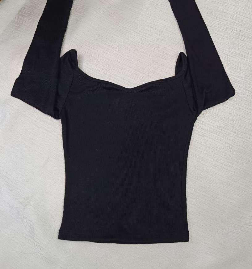 Fabric: Crafted from a ribbed, lightweight jersey (as seen in the flat lay) that offers both breathability and a flattering, snug fit.
