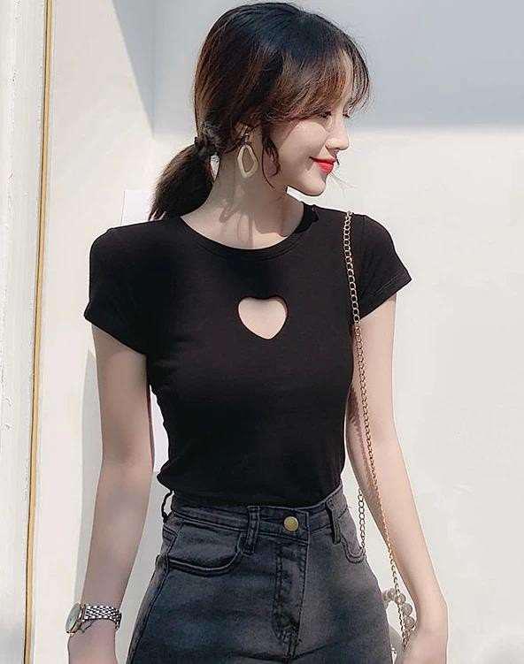 Elevate your basics with this Ribbed Heart Cut-Out Tee. Combining a classic slim-fit silhouette with a romantic hollow-out detail, this top is the perfect balance of edgy and sweet. Crafted from a soft, breathable ribbed knit, it offers a flattering stretch that moves with you.